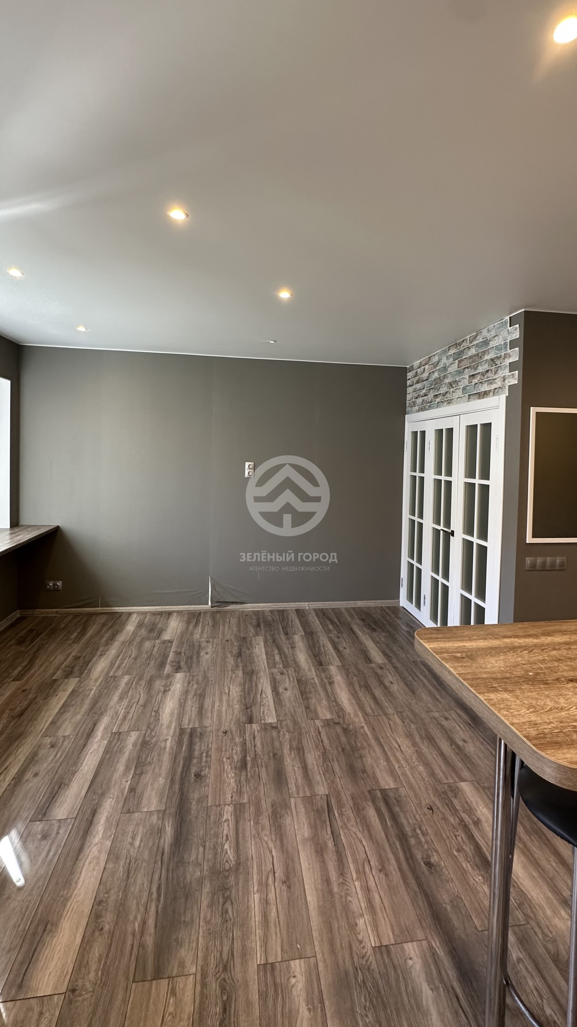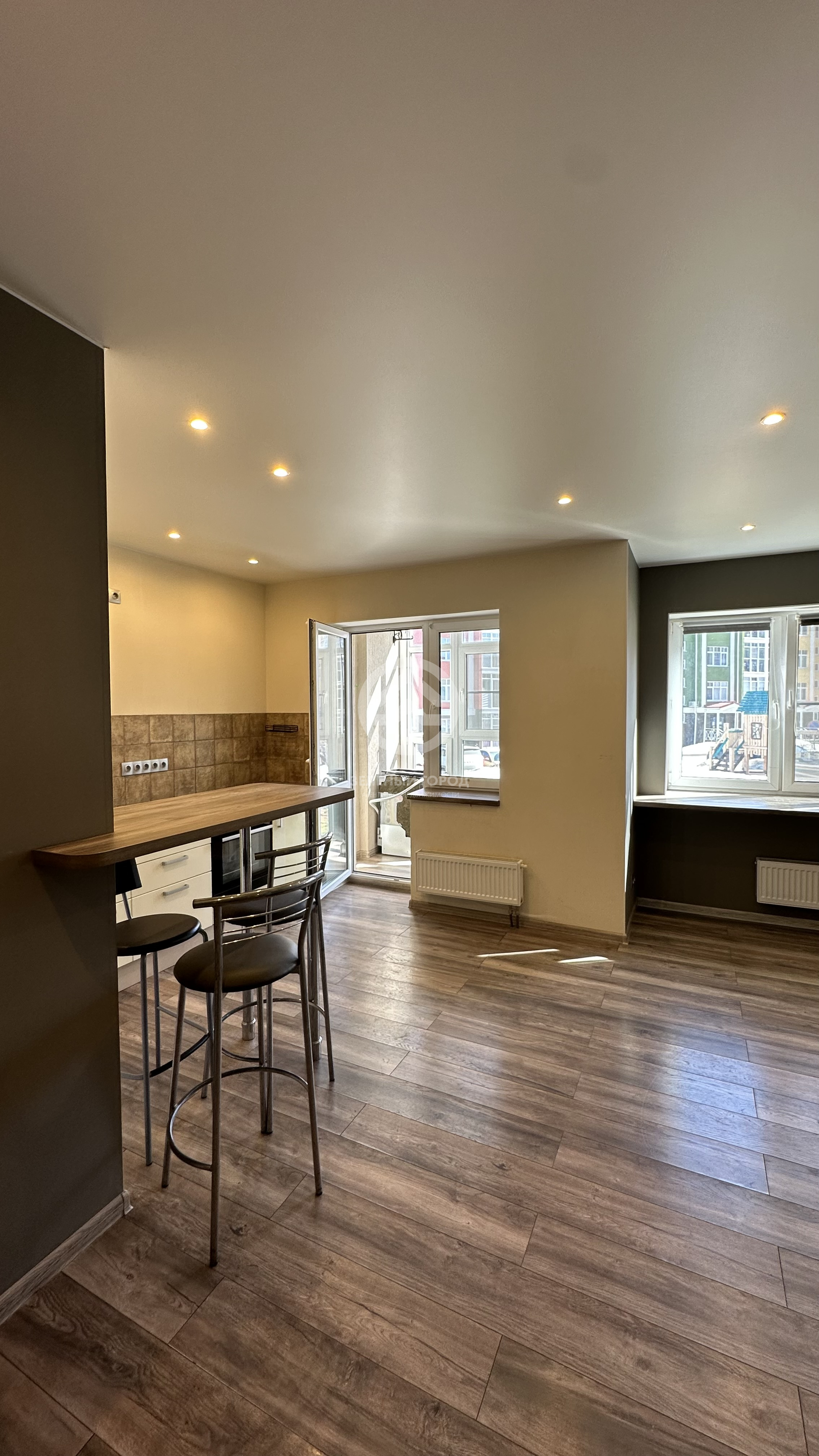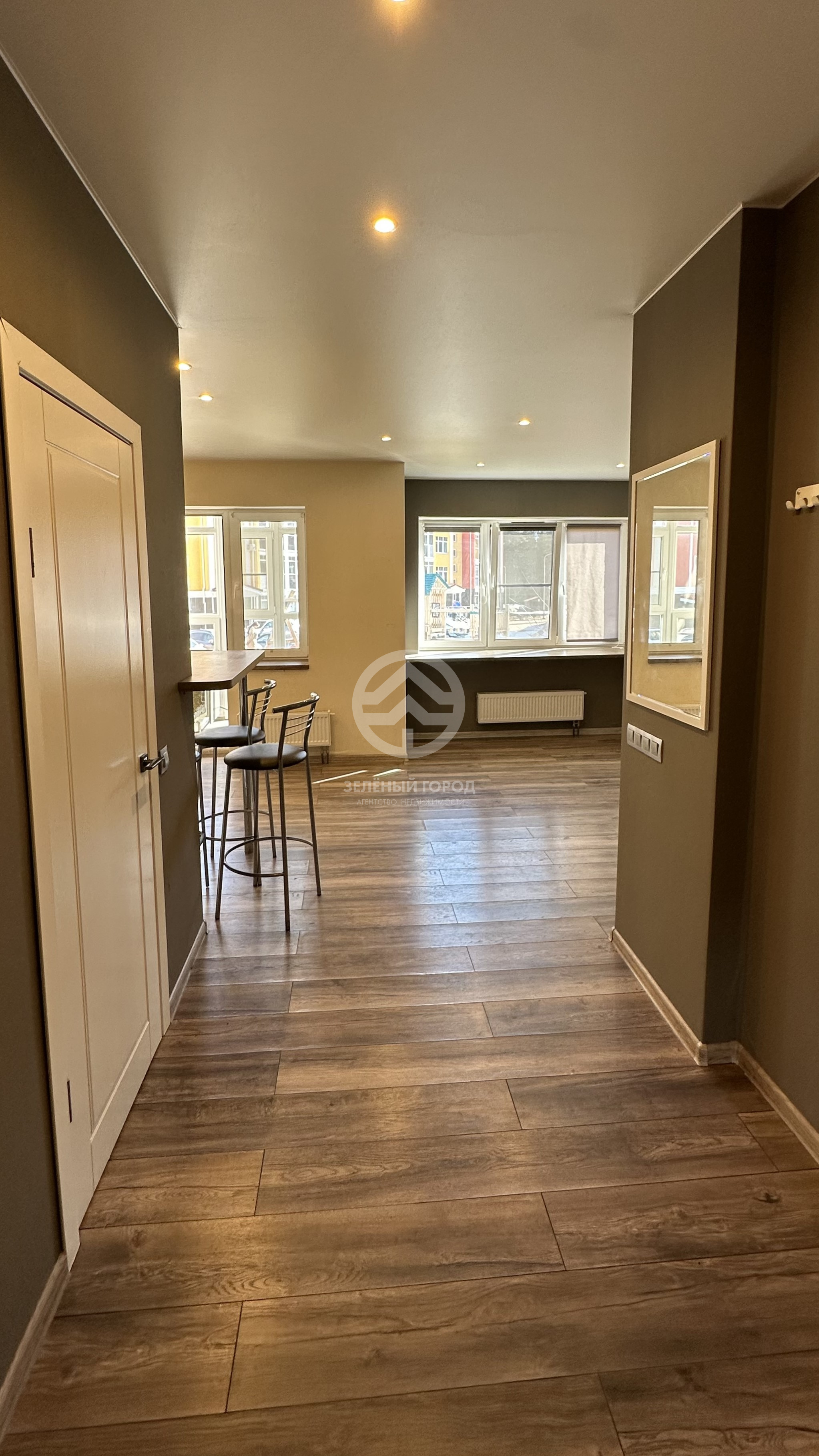 1-комнатная квартира-студия, максимум света и пространства. Панорамное остекление лоджии даёт ощущение, что вы находитесь в саду, не выходя из квартиры.