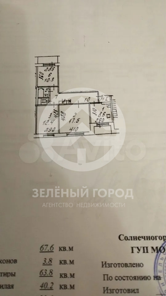 Общая площадь — 63,8 кв.м., жилая площадь — 40,2 кв.м.