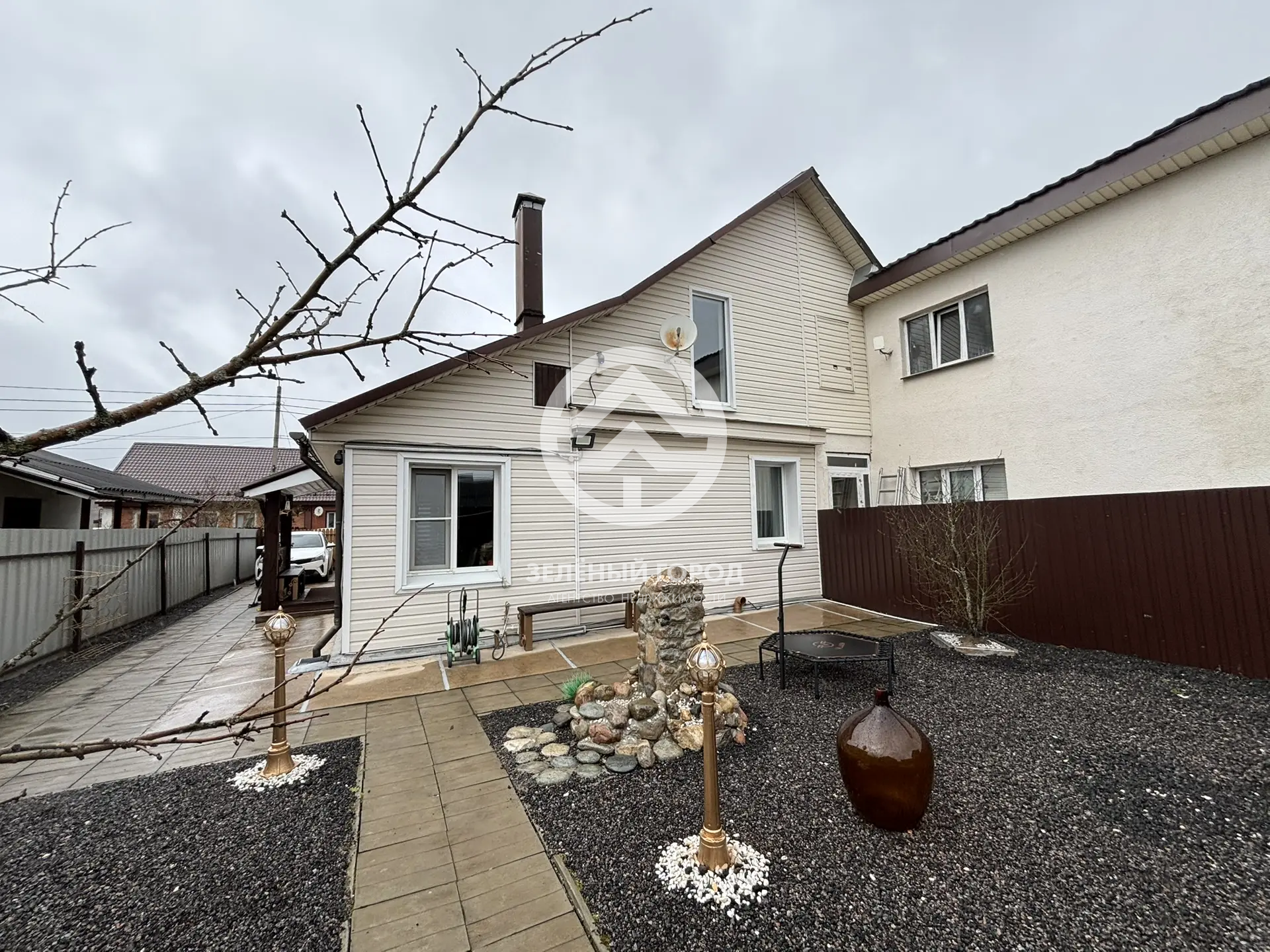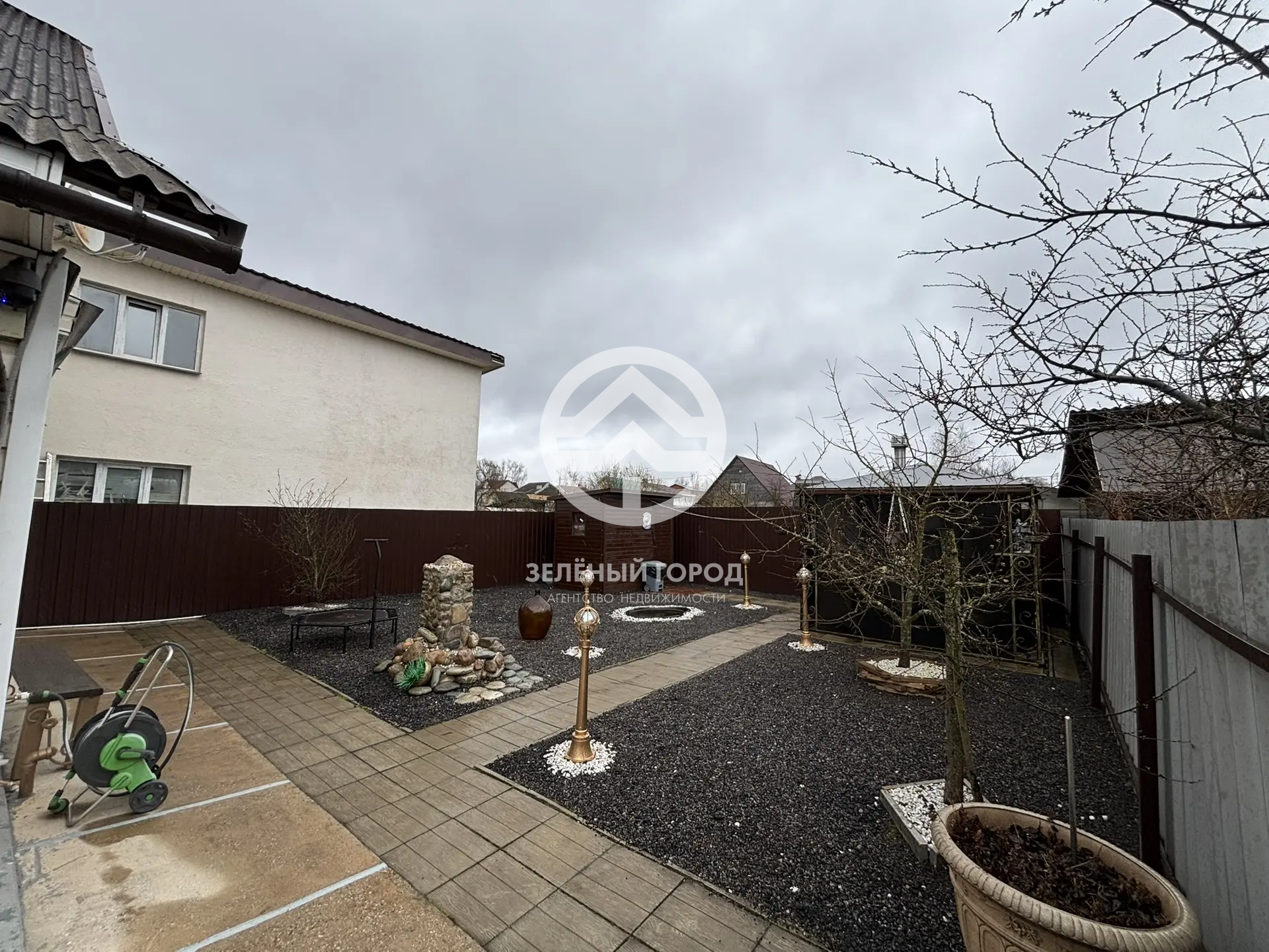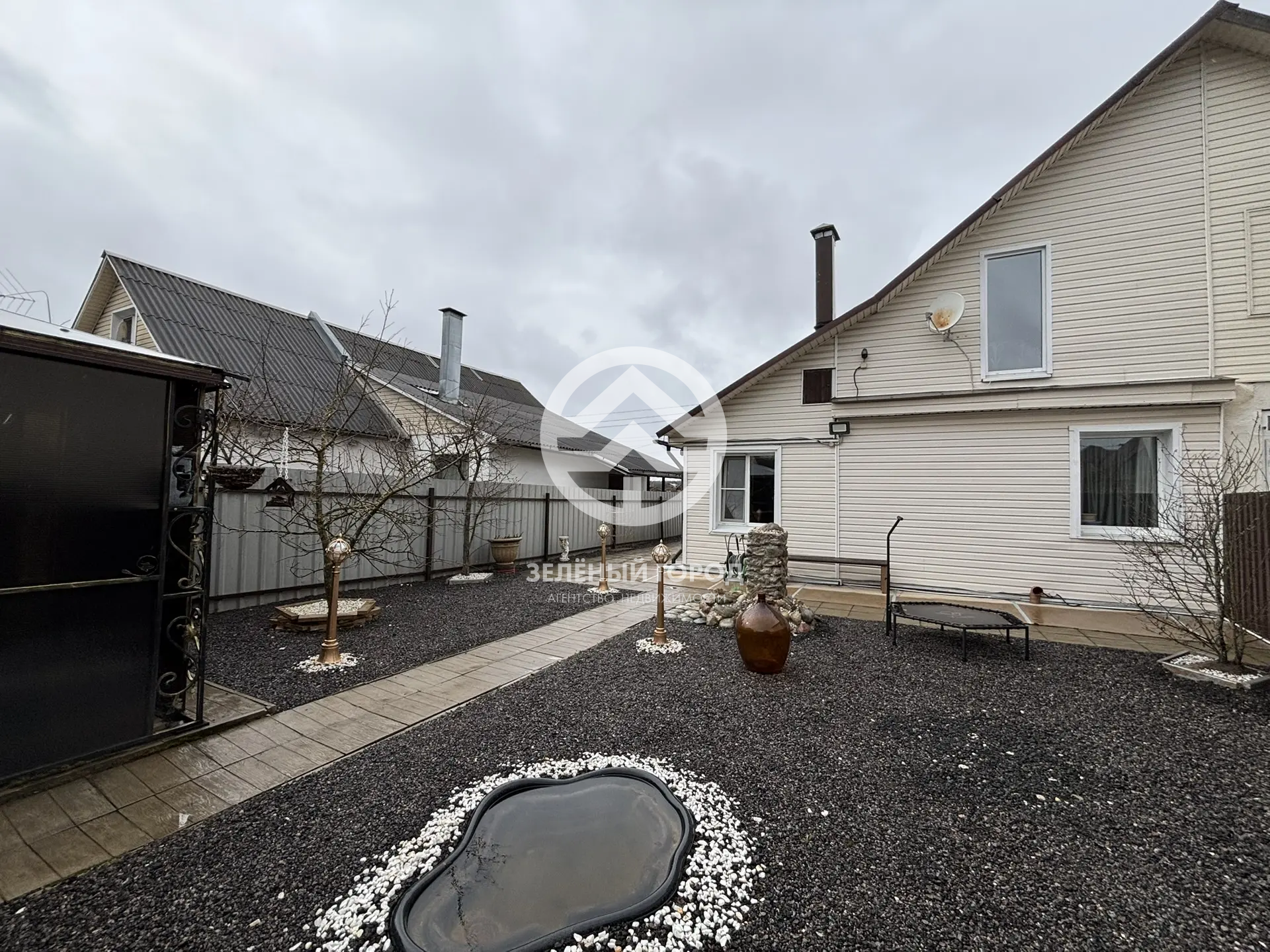 Подпол дома отличается сухостью и идеален для хранения овощных культур в зимний период. Придомовая территория облагорожена: уложена стильная плитка с системой отвода воды, выполнена отмостка, а также уложена асфальтная крошка. К вашим услугам крытый морозостойкий бассейн – идеальное место для отдыха в любое время года, уютная беседка с встроенным мангалом, мебелью из ротанга и большим столом, а также живописные фонтаны. Для хранения инструментов предусмотрена просторная бытовка.