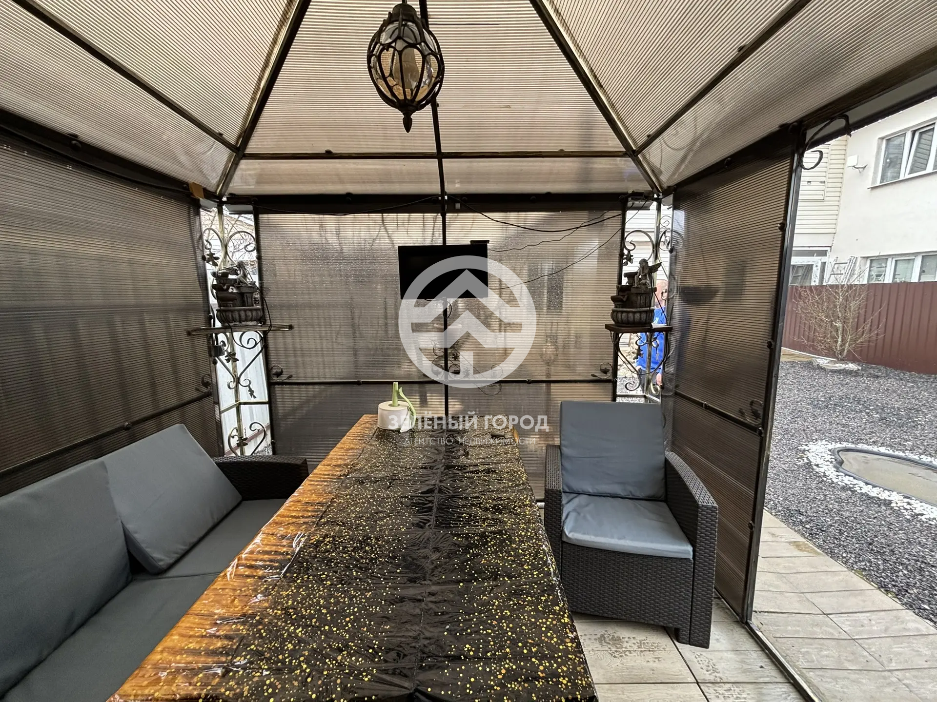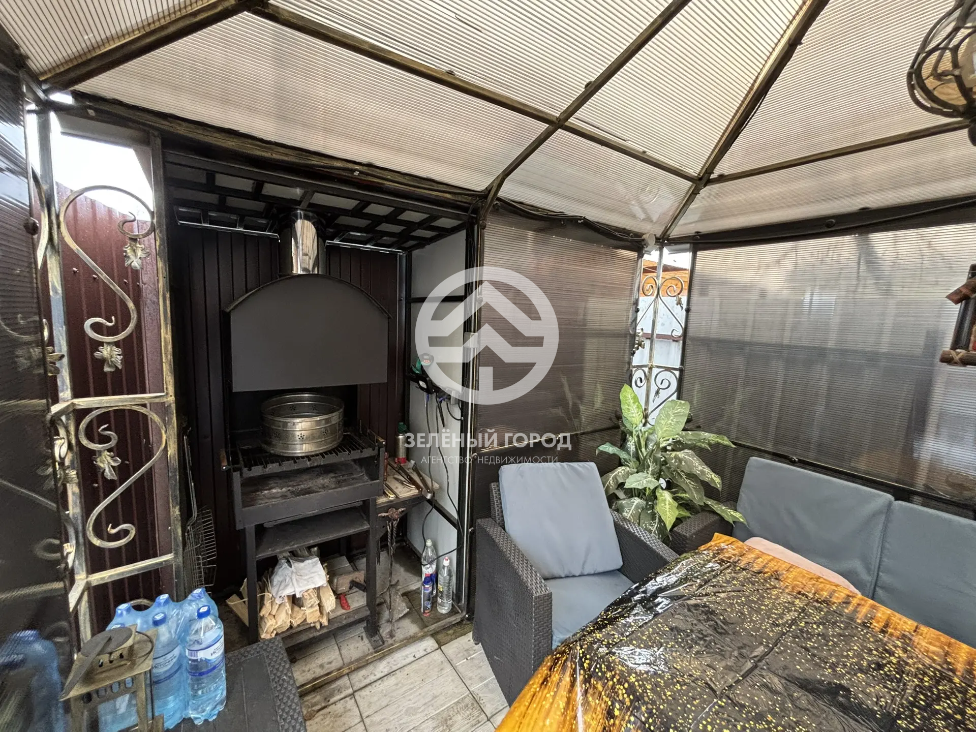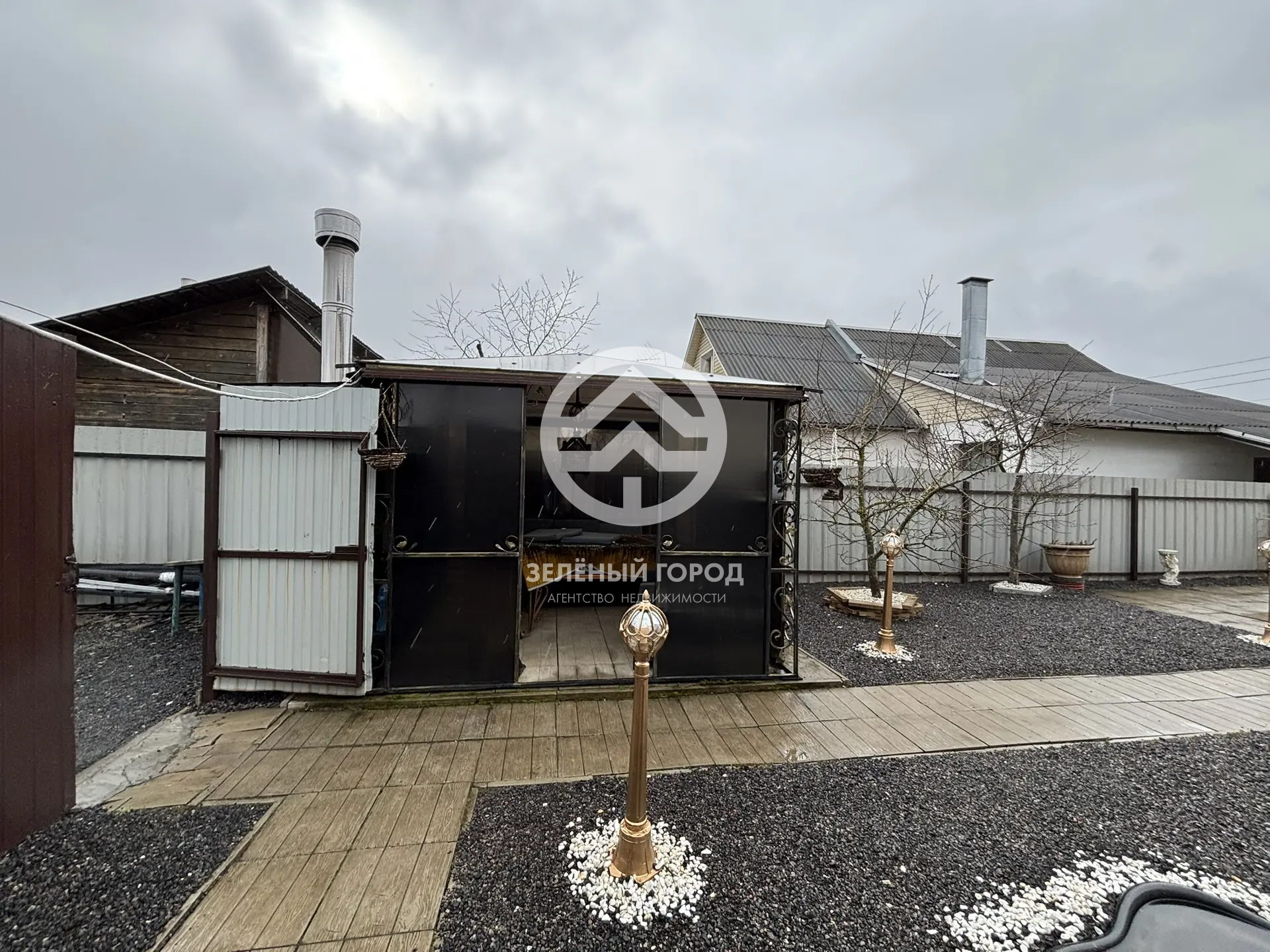 Подпол дома отличается сухостью и идеален для хранения овощных культур в зимний период. Придомовая территория облагорожена: уложена стильная плитка с системой отвода воды, выполнена отмостка, а также уложена асфальтная крошка. К вашим услугам крытый морозостойкий бассейн – идеальное место для отдыха в любое время года, уютная беседка с встроенным мангалом, мебелью из ротанга и большим столом, а также живописные фонтаны. Для хранения инструментов предусмотрена просторная бытовка.