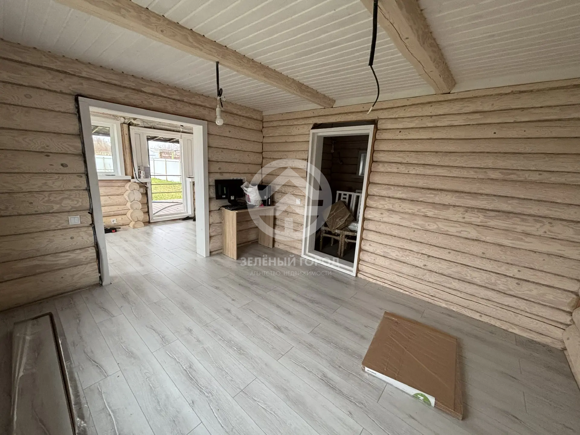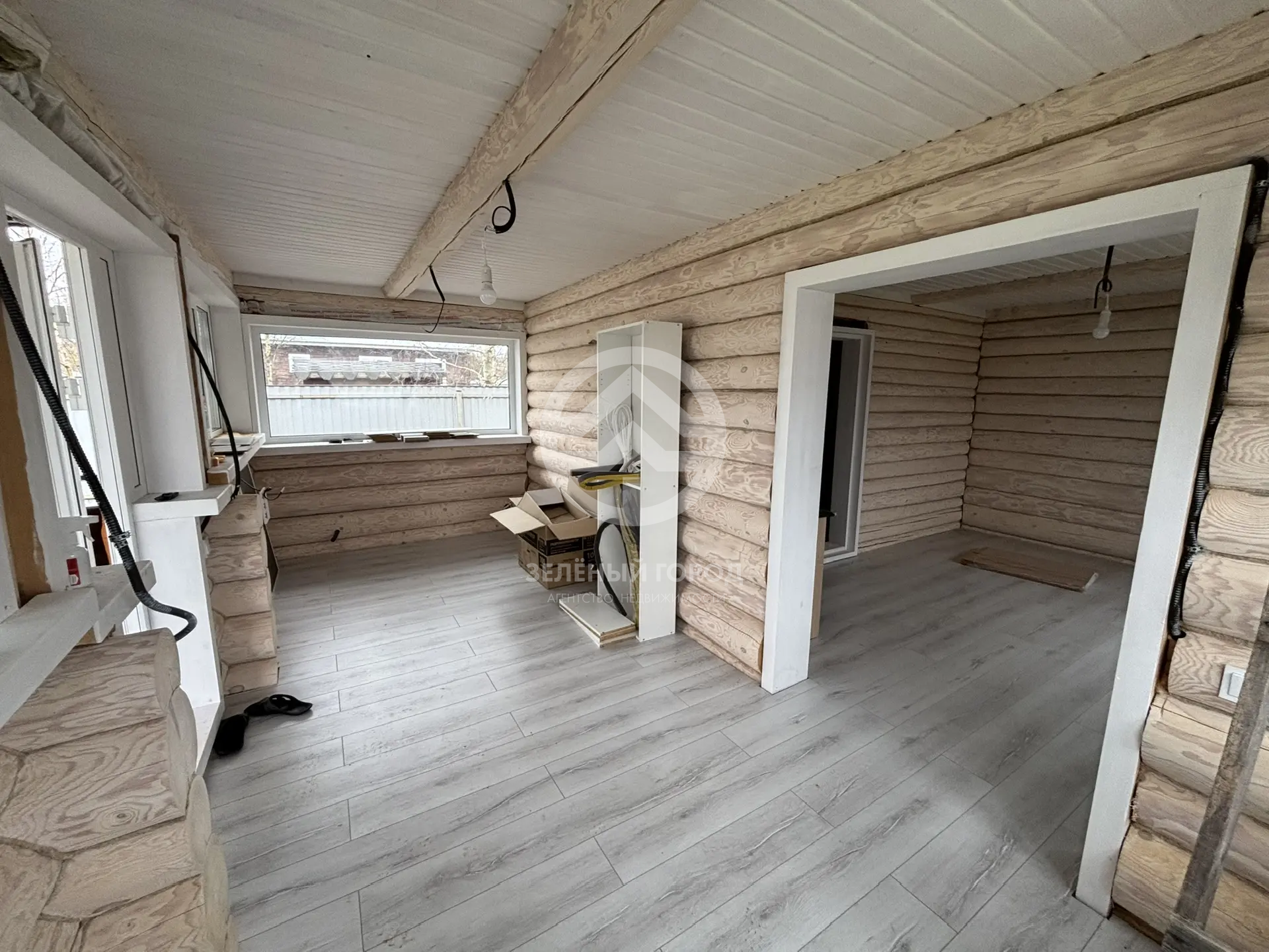 Скрытая электрическая проводка, уложенная по всему дому, обеспечивает безопасность и эстетику, не нарушая природной красоты бревенчатых стен. Пластиковые окна со стеклами с затемнением защитят от излишнего солнечного света и создадут комфортную атмосферу внутри. Металлочерепичная крыша – это гарантия надежности и долговечности, а забор из профлиста по всему периметру участка обеспечит приватность и безопасность. Внутри дома на полу уложен влагостойкий ламинат, что делает его практичным и легким в уходе.
