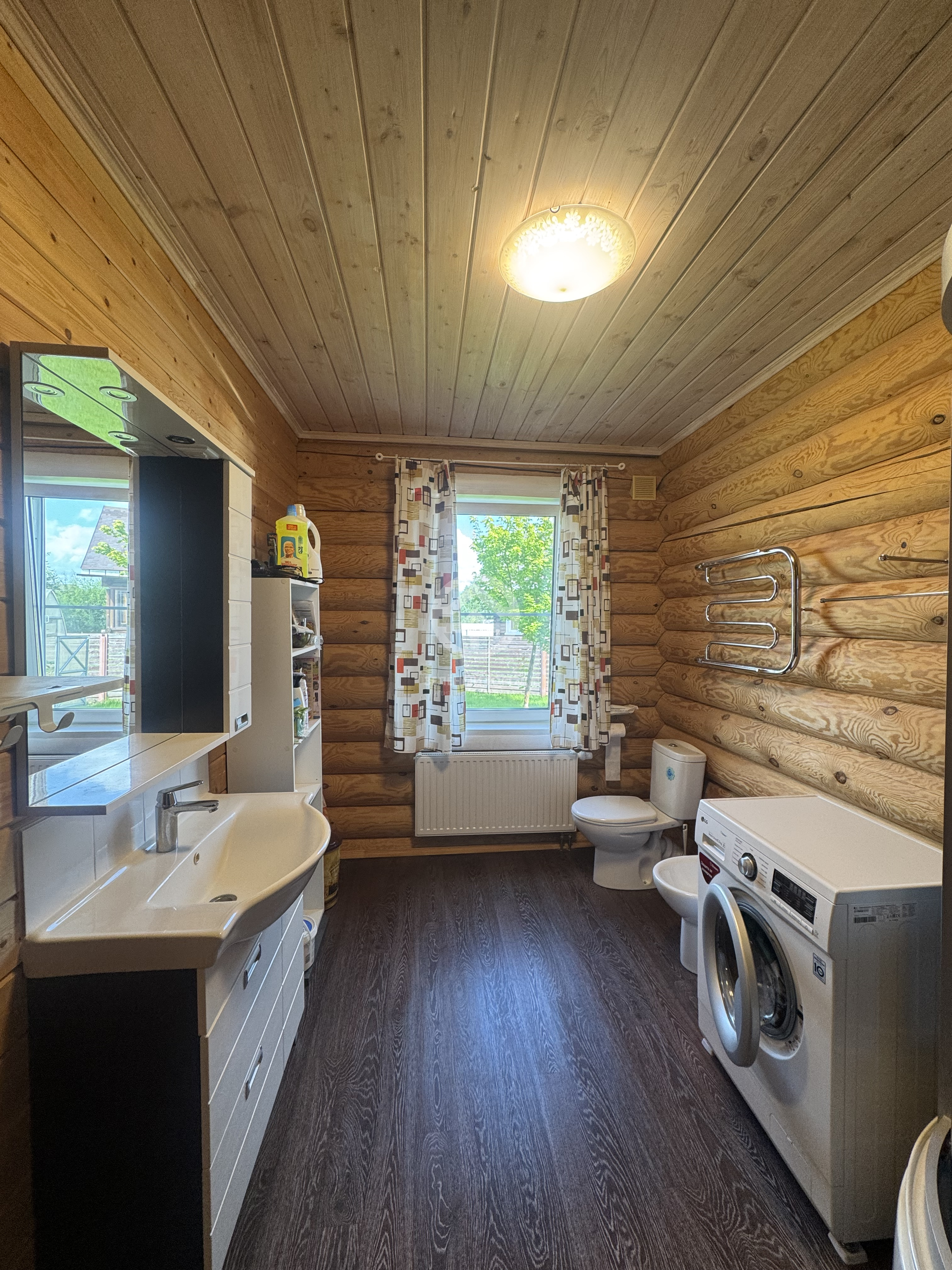 №55917. Продаётся жилой дом в экологически чистом и живописном месте! Подходит для круглогодичного проживания на земельном участке 8,5 сотки по адресу: Московская обл. Клинский район, д. Поджигородово, территория ДНП «Вельга Парк». Дом 2013 года постройки, общей площадью – 162,1 кв.м., на ленточном фундаменте (1.8 метра в землю), материал дома – оцилиндрованное бревно, кровля – металочерепица. Еще из построек – хозблок 3х3 для хранения инвентаря, Участок огорожен забором из сварной сетки, ровный, освоен, ухоженный, установлены ворота и калитка. Отмостка, дорожки для прохода и парковочная зона выложены брусчаткой. Коммуникации: электричество 7 кВт (сельский тариф, можно увеличить), магистральный газ, отопление - газовый котел, автономный септик. Круглогодичный водопровод с чистейшей водой питается от двух артезианских скважин глубиной 180м. Планировка дома: 1 этаж - кухня, гостиная, комната, санузел, бойлерная, терраса, 2 этаж - две спальные комнаты, гардеробная. Везде установлены качественные стеклопакеты, проведен интернет. Удобное месторасположение 75 км от МКАД. Дороги в поселке выполнены из монолитного бетона, а небольшие проезды вымощены бетонными плитами и укатанной асфальтной крошкой. В соседних деревнях Кузнецово и Щекино имеется 3 магазина, детский сад и школа. В поселке ведется строительство озера площадью 9 000 кв. м., которое будет доступно для жителей поселка. Спишите приобрести дом своей мечты, приятная атмосфера и тишина не оставят вас равнодушными.